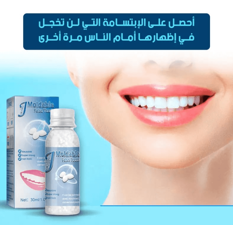Simply soften the moldable teeth with hot water, press them onto your existing teeth, and let them cool for a custom fit.